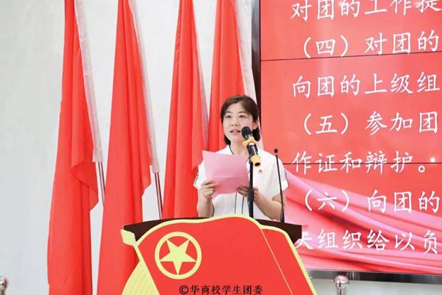 由朱宁宁老师作为入团介绍人代表宣读《团章》条款,为新老团员介绍清楚团员的权利与义务,加强团员对自身责任担当的理解,时刻将条款铭记于心。
