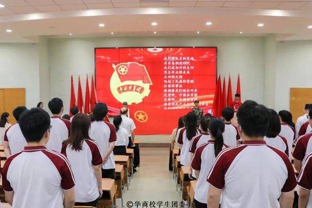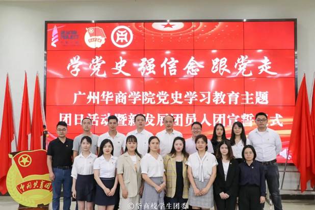 为全面贯彻落实习近平总书记在党史学习教育动员大会上的重要讲话精神,进一步促进青年明确学习党史的重要意义所在,秉持正确党史观,提高青年责任感和使命感,厚植爱党、爱国、爱社会主义情感,引导广大青少年感党恩、听党话、跟党走,壮大党的后备军队伍。广州华商学院“学党史、强信念、跟党走”党史学习教育主题团日活动暨新发展团员入团宣誓仪式于 2021 年5月 11 日 15:00 在励志楼 C408 举行。