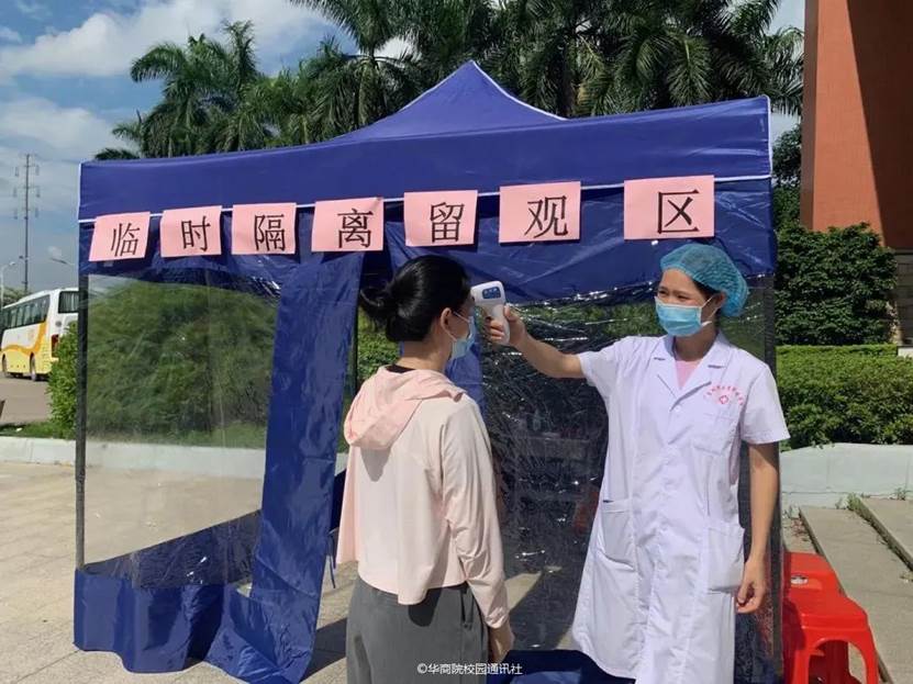 并在临时隔离留观区静坐一段时间后,经测量体温无异常,方可正常进入校园。