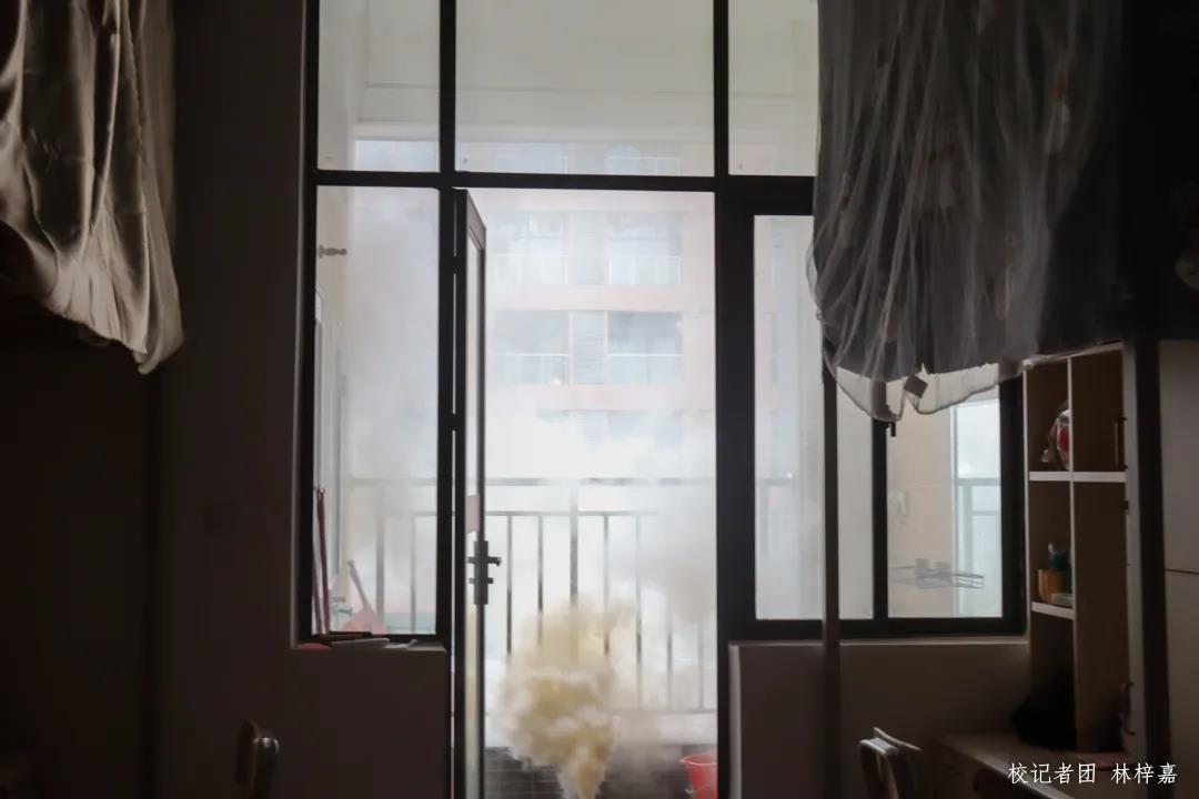 下午15:30分,演练正式开始。一场通过放烟雾弹模拟宿舍着火的场景拉开了演练的序幕。第三栋学生宿舍宿管员及时发现火情,迅速报告。校园火灾警报随之拉响,各应急小组协同响应,即刻开展灭火救援行动。消防员快速进入火场实施救火、救援,宿管员、辅导员、保安员进入楼栋迅速紧急疏散学生下楼,医务人员有序快速就位,及时对伤员进行救治。宿舍内的学生严肃以待,用湿毛巾掩住口鼻,低姿撤离到指定地点集中。整个疏散过程安全、迅速、有序。