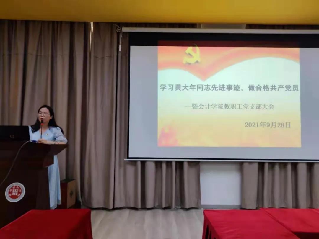 会计学院教工党支部于9月28日在厚德楼会计学院学术报告厅开展了学习黄大年同志先进事迹专题组织生活会。会议由支部书记马桂芬同志主持,全体教工党员参会。