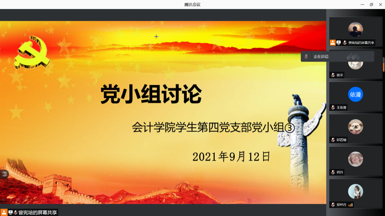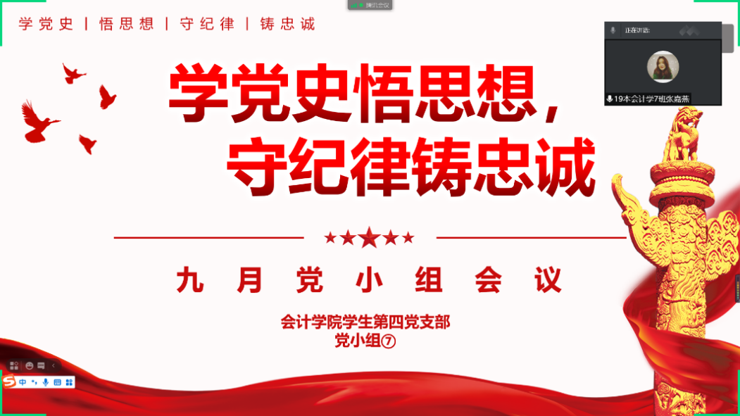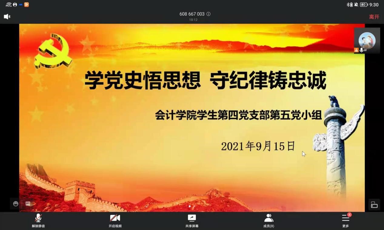 9月中旬,为进一步深化党史学习教育,会计学院学生第四党支部推动全体党员以党小组为单位开展专题学习。各党小组认真对待,选定主题,通过线上形式深入组织学习。