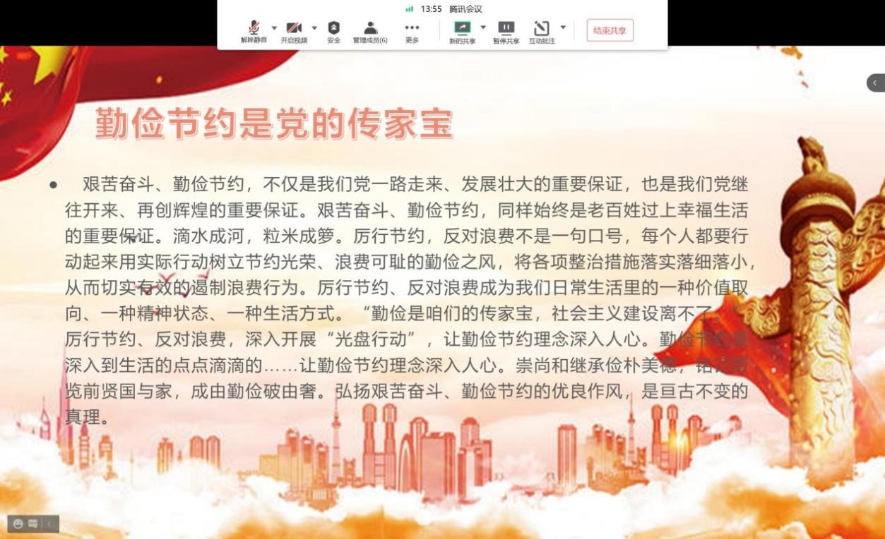 9月15日,第二党小组围绕“勤俭节约是党的传家宝”主题开展学习,通过此次党小组会议的学习,让小组内的各位同志了解勤俭节约是党的传家宝,让大家积极学习党优秀伟大精神,注重内在精神的提升,做优秀中国共产党党员。