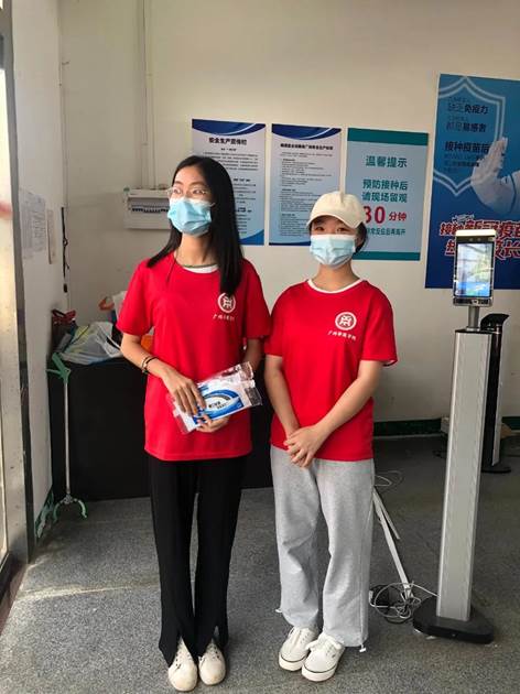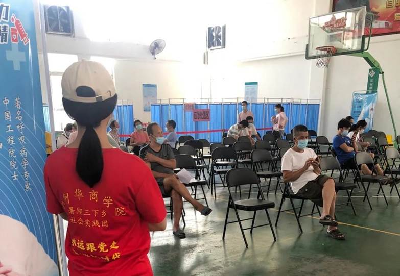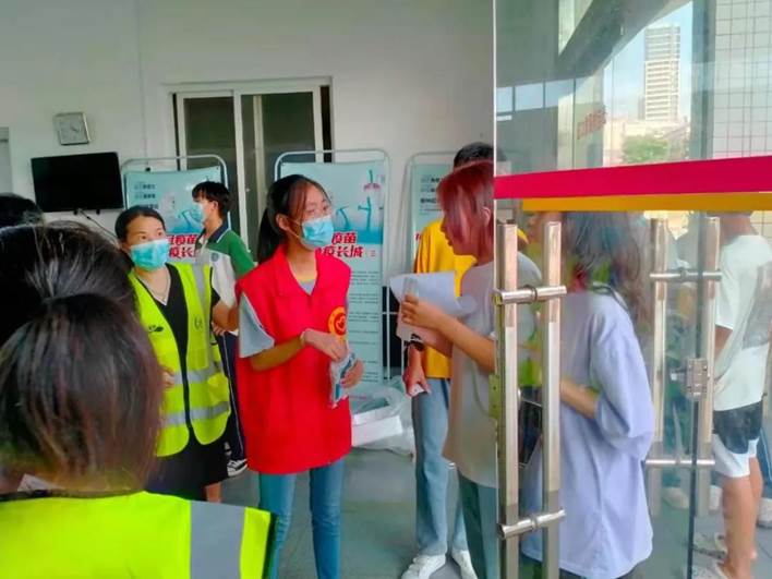 实践队队员们赴汕头市南澳县后宅镇全民健身广场新冠疫苗临时接种点进行志愿服务。协助工作人员维持现场秩序、引导居民有序排队、扫码登记、填表等候、进行接种。