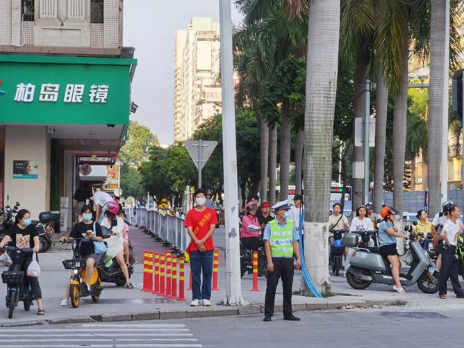 下班晚高峰时段,车流量和人流量较大,队员们认真在各自负责的区域进行文明交通的引导工作,并对闯红灯、乱穿马路、逆向行驶等不遵守交通规则群众进行劝导,成为城市中一道靓丽文明风景线。