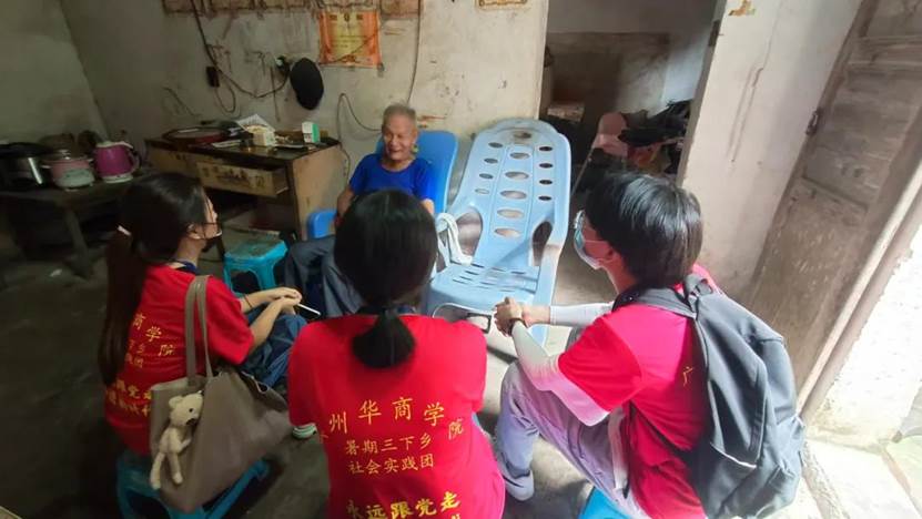 实践队伍赴运河建设者集中居住的村落——新屋仔村,深入感受当地红色文化气息并学习其历史。队员们在接受红色文化熏陶的同时积极寻找运河建设者们的足迹,通过询问村民,实践队最终找到黄锡存、彭秀英等老几位修建运河的先辈。