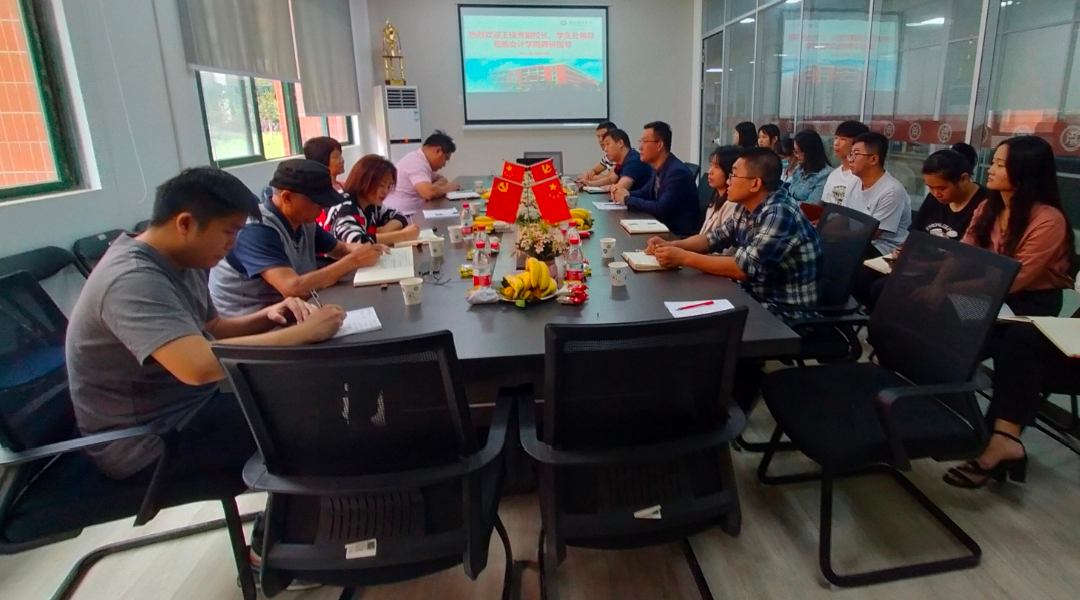 为了提高学生管理水平,把握各学院学生工作中的重点和难点,做好后疫情时代学生管理工作,10月28日上午9点,王锦秀副校长、学生处领导深入会计学院开展调研工作。校长助理、学生处处长许娜,学生处副处长黄国富、熊桂桃,会计学院副院长陈洋广,各年级主任以及增城校区全体辅导员参加本次调研活动。本次调研交流会在会计学院会议室举行,由会计学院副院长陈洋广主持。