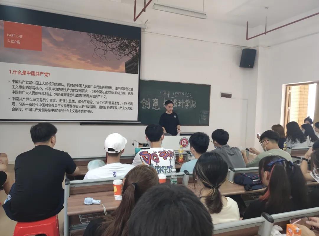 为增进同学们对中国共产党的了解,满足同学们对入党流程的熟悉,端正青年大学生的入党动机,推动学院学生党建工作的顺利进行。9月13日,创意与设计学院党群志愿服务队于在我校四会校区组织了2021级新生入党宣传动员活动。