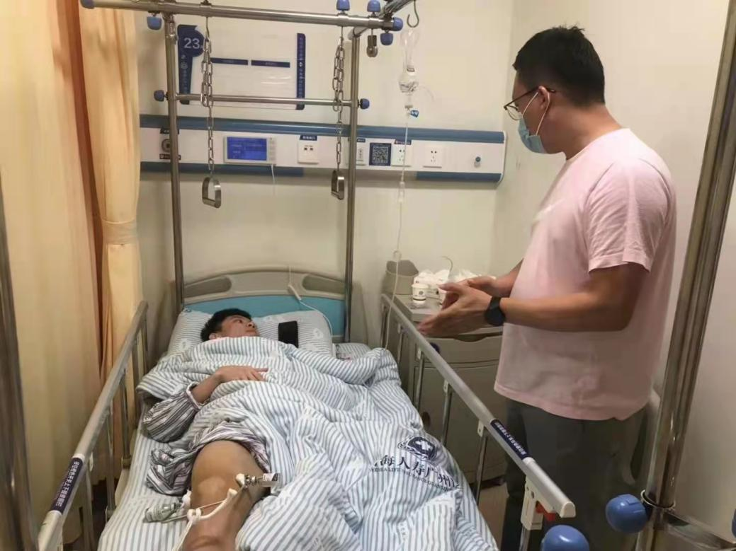 杨森源同学是会计学院第25期的发展对象,因在体测过程中不幸腿骨折住院,部分党课请假。住院前期,会计学院党委负责人,副院长陈洋广老师代表学院党务的全体同志前往医院看望杨森源同学,及时与家属进行沟通,了解杨森源同学的伤势情况,耐心听取家属及学生本人的诉求,力所能及地提供帮助,并现场为其授课,杨森源同学在出院后也顺利地参加了党课结业考试。